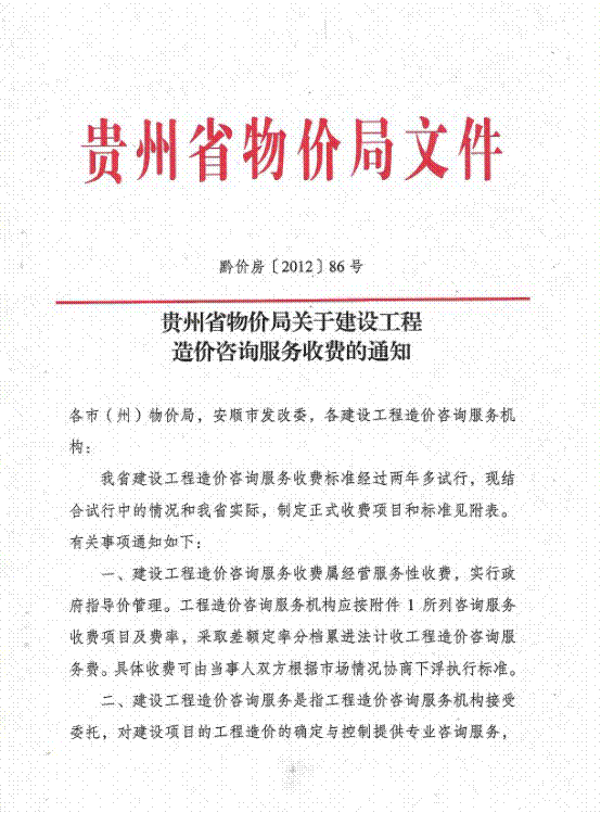 貴州物價(jià)局關(guān)于建設(shè)工程造價(jià)咨詢(xún)服務(wù)收費(fèi)的通知
